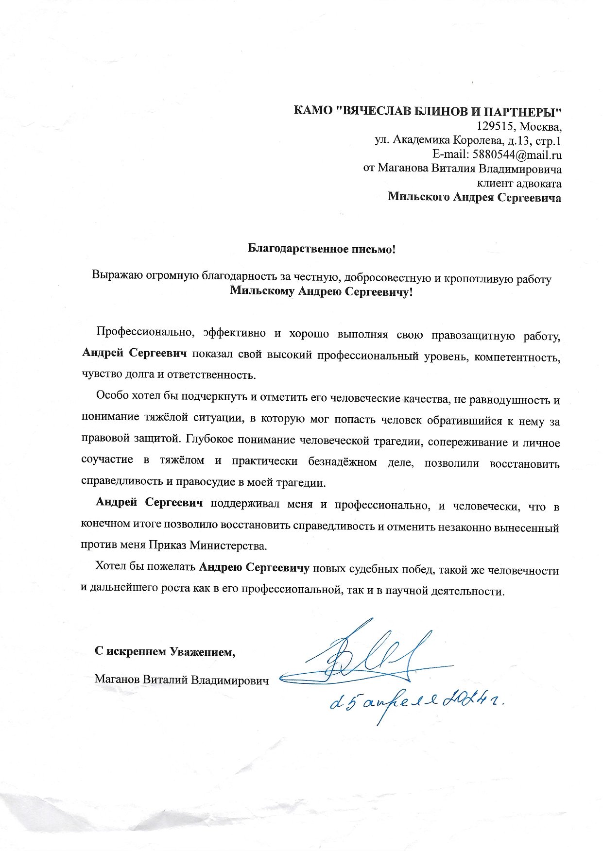 Сведения о положительном профессиональном опыте